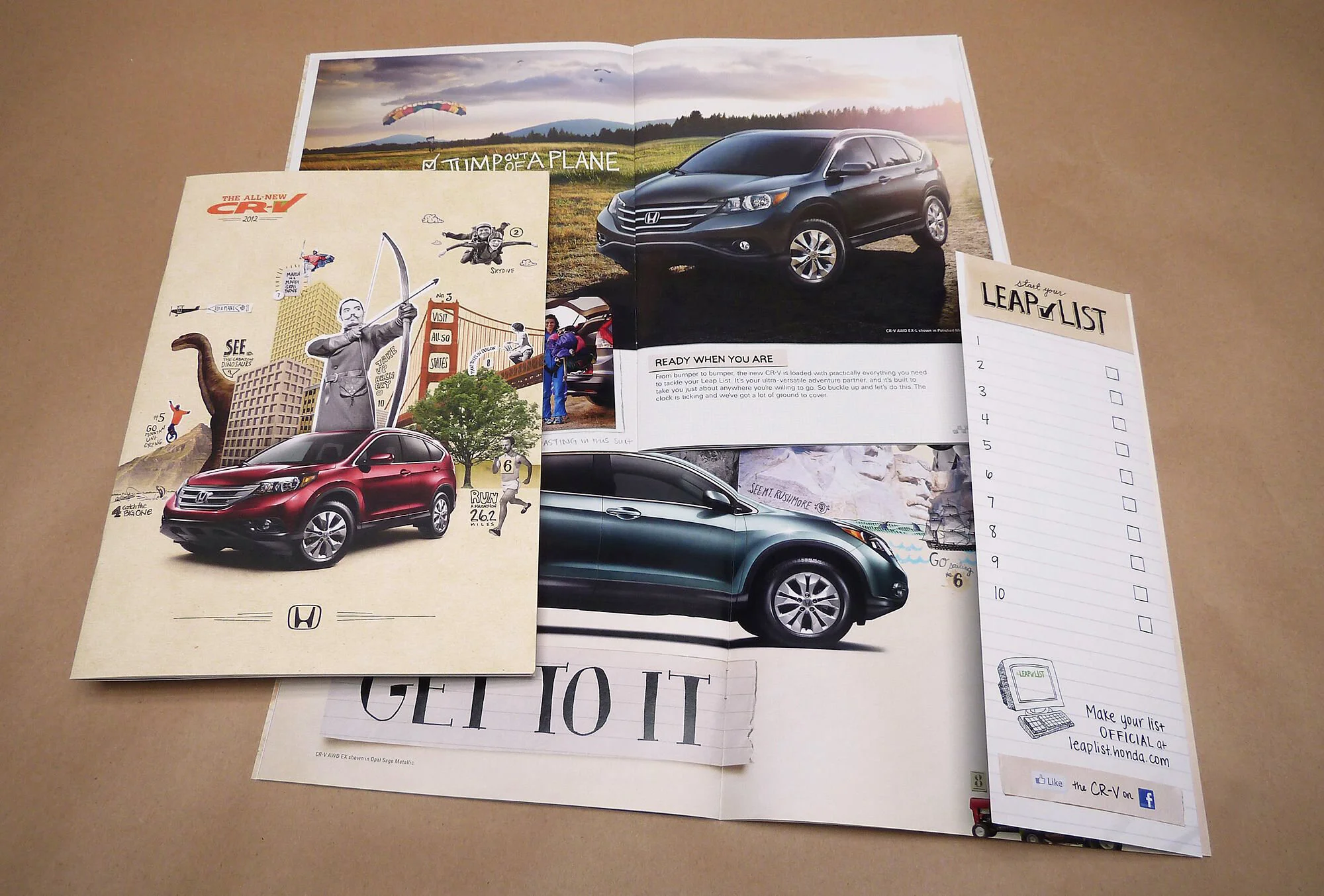 The brochure concept used a specific Leap List as a way to showcase and demonstrate all the great features of the CR-V. Want to join a band? Let’s talk about the cargo capacity. Surf and Snowboard in the same day? Let’s talk about fuel efficiency, power and all-wheel drive. The last page of the piece featured a detachable Leap List that was ready to fill out, with a call for consumers to share their list online.